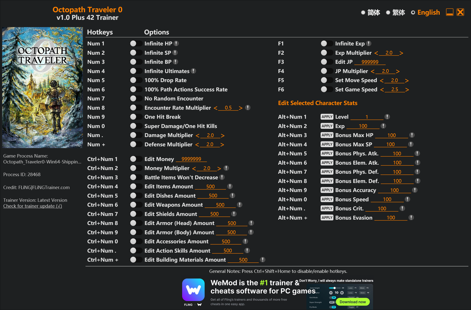 Трейнер для Octopath Traveler 0 версии 1.0 от FLiNG +42
