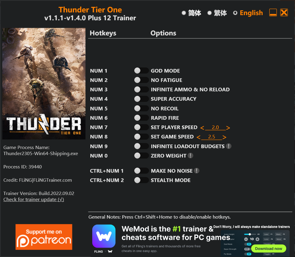 Трейнер для Thunder Tier One версии 1.4.0 от FLiNG +12