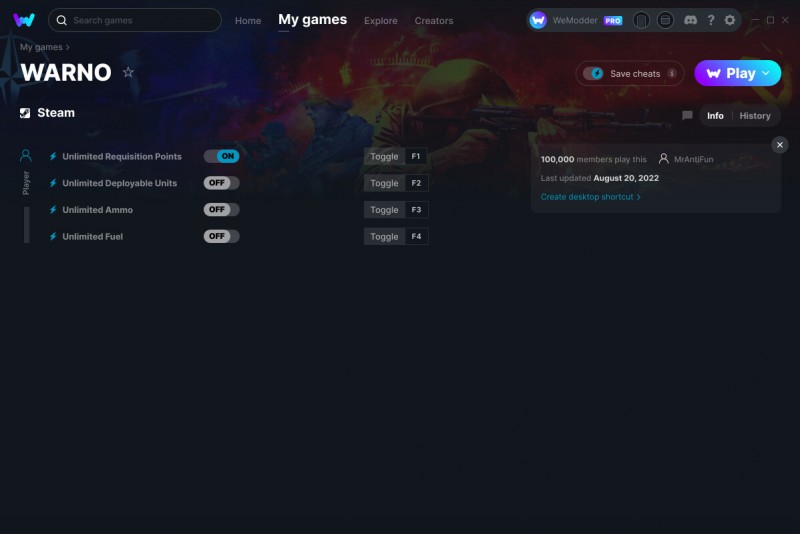 Трейнер для WARNO от MRANTIFUN / WEMOD +4