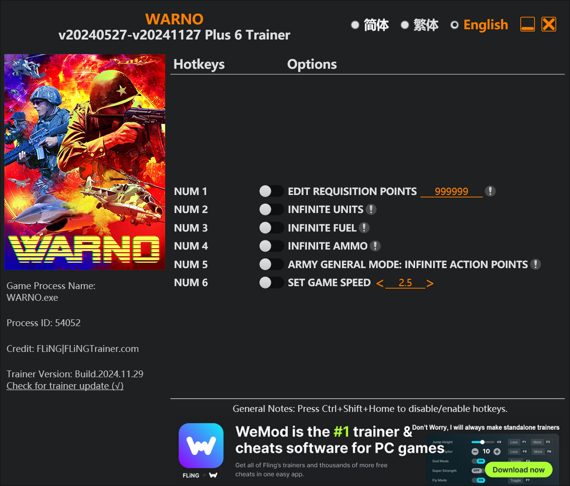 Трейнер для WARNO версии 20241127 от FLiNG +6
