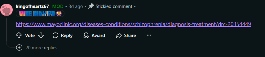 Это ссылка на клинику, где помогают больным шизофренией. Есть и другие комментарии: