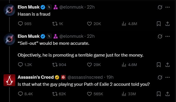 Бизнесмен и миллиардер Илон Маск решил высказаться по поводу политического блогера Хасана Пайкера, который на днях провел явно оплаченную Ubisoft трансляцию Assassin's Creed Shadows.