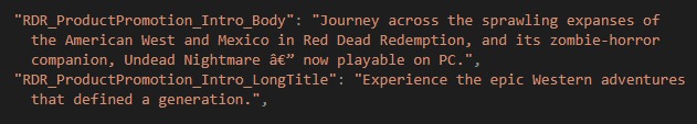 Датамайнер и главный блогер по играм Rockstar под ником Tez2 рассказал, что в файлах лаунчера студии нашли упоминание Red Dead Redemption. Он нашел переменные RDR_Product Promotion_Intro_Body и RDR_Product Promotion_Intro_LongTitle, в которых сказано, что RDR и дополнение Undead Nightmare станет доступно на ПК.