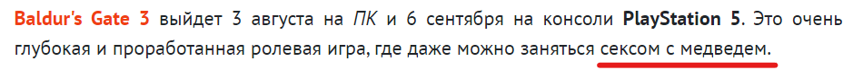 Baldur's Gate 3 выйдет 3 августа на ПК и 6 сентября на консоли PlayStation 5. Это очень глубокая и проработанная ролевая игра, где даже можно заняться сексом с медведем.