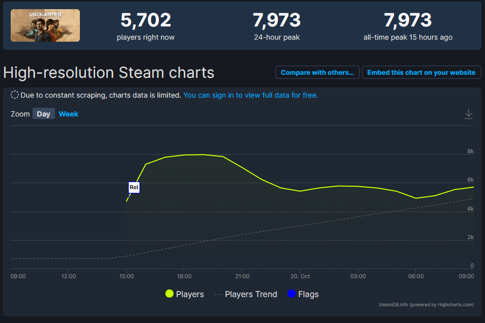 Неизвестно, провал ли это рекламной кампании, влияние торрента или просто недальновидность самих разработчиков, но ПК-версия Uncharted: Legacy of Thieves Collection сейчас не очень хорошо продается, если судить по статистике сайта steamdb.info.