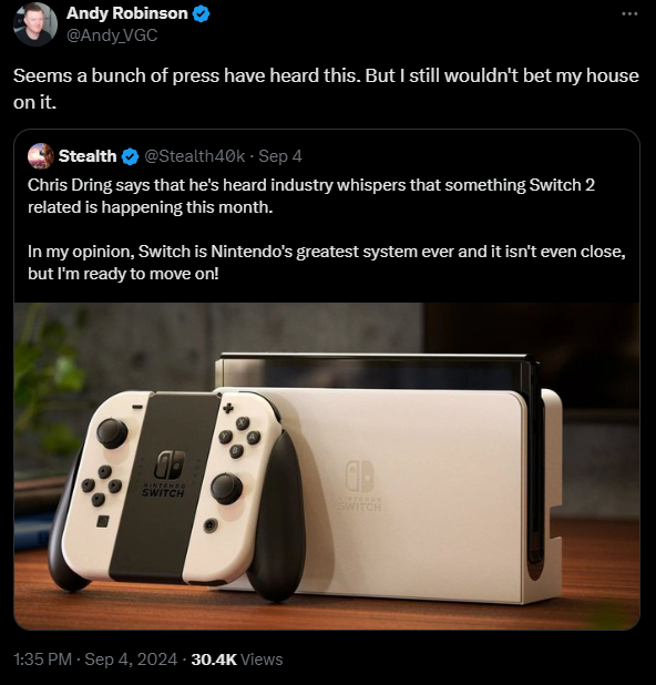 «Похоже, куча представителей прессы слышала про новости о Switch 2. Но я все равно на это свой дом не поставлю», — написал Робинсон.